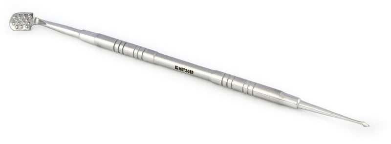 Ложка УНО Metzger PC-178 для механической чистки кожи лица и ушных раковин. Имеет две рабочие поверхности с двух сторон: ложечка под наклоном и тонкая игла. Приспособление оказывает слабое давление на проблемную часть кожи и полностью исключает возможность нанесения ран. После каждой очистительной процедуры следует провести стерилизацию инструмента. Ложка прочная, надёжная и долговечная.