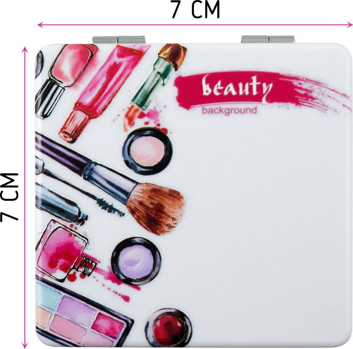 Зеркала компактное изготовлено из качественного, рельефного пластика, приятного на ощупь. Одна сторона двойного зеркальца имеет двукратное увеличение, вторая сторона - обычное зеркало.