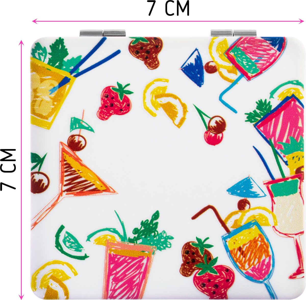 Зеркала компактное изготовлено из качественного, рельефного пластика, приятного на ощупь. Одна сторона двойного зеркальца имеет двукратное увеличение, вторая сторона - обычное зеркало.