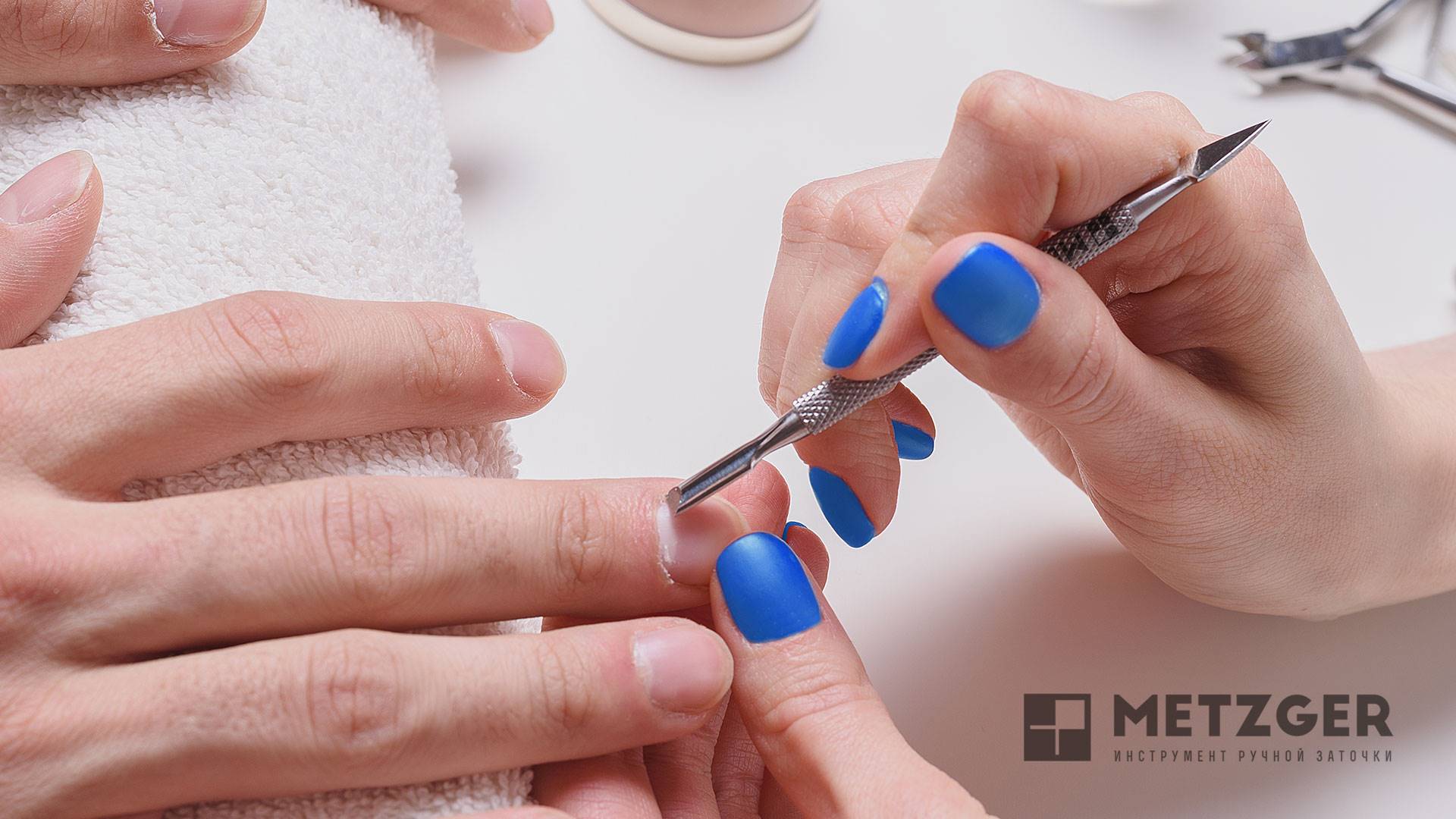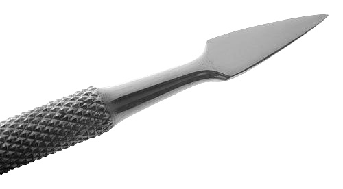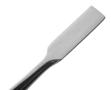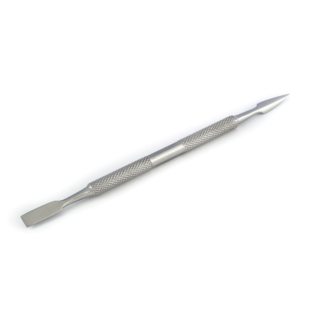 Шабер двухсторонний. Имеет две рабочие поверхности - прямоугольную лопатку для отодвигания чувствительной кутикулы и пику, обеспечивающую тщательную очистку ногтевого плато под любым углом.