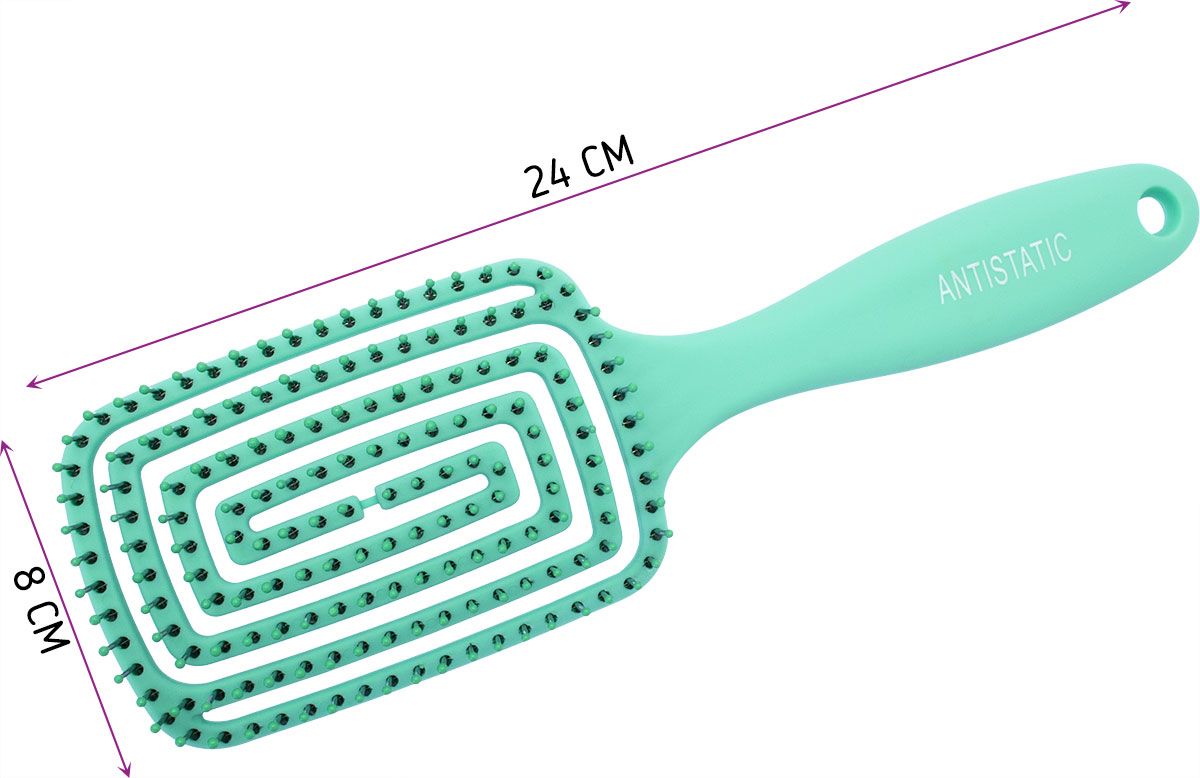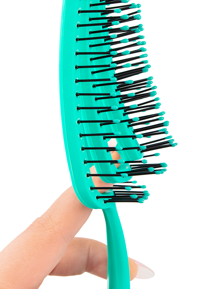 Изогнутая и гибкая форма расчески идеально подходит для любой формы головы. Щетка аккуратно расчесывает волосы и улучшает кровообращение кожи головы.