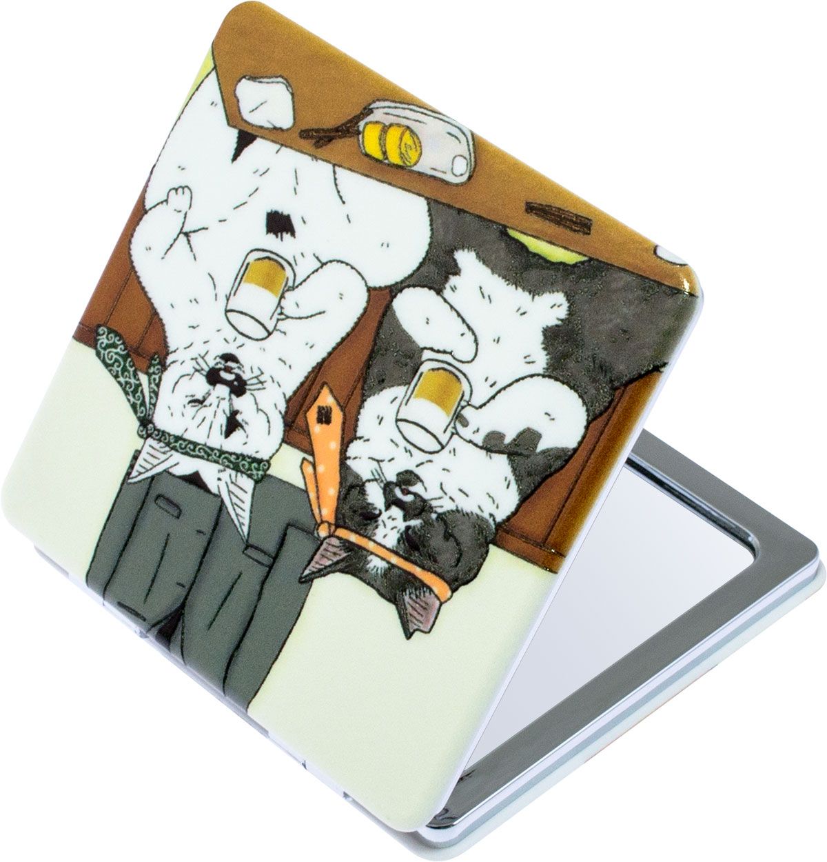 Зеркало косметическое, карманное Weisen NSA268 серия Japanese cats Японские коты.