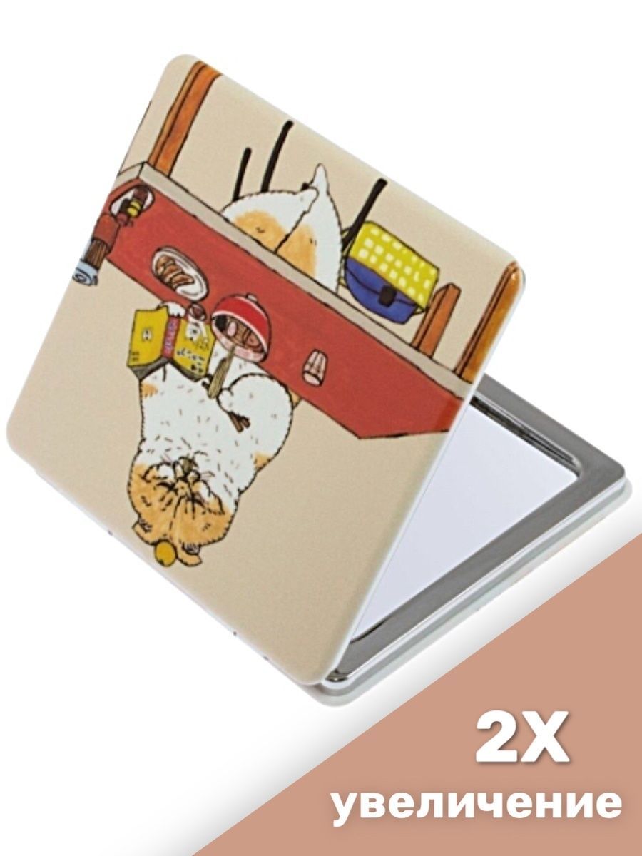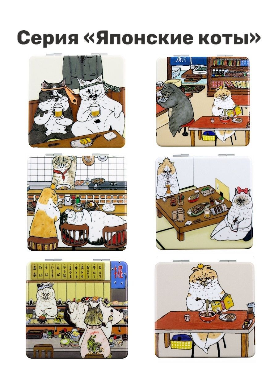 Зеркало косметическое, карманное Weisen NSA269 серия Japanese cats Японские коты.