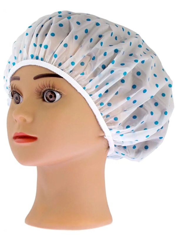 Шапочка для душа Weisen WSH-04 белая с синим горохом