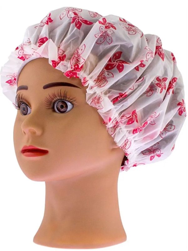 Шапочка для душа Weisen WSH-05 белая с красными цветами