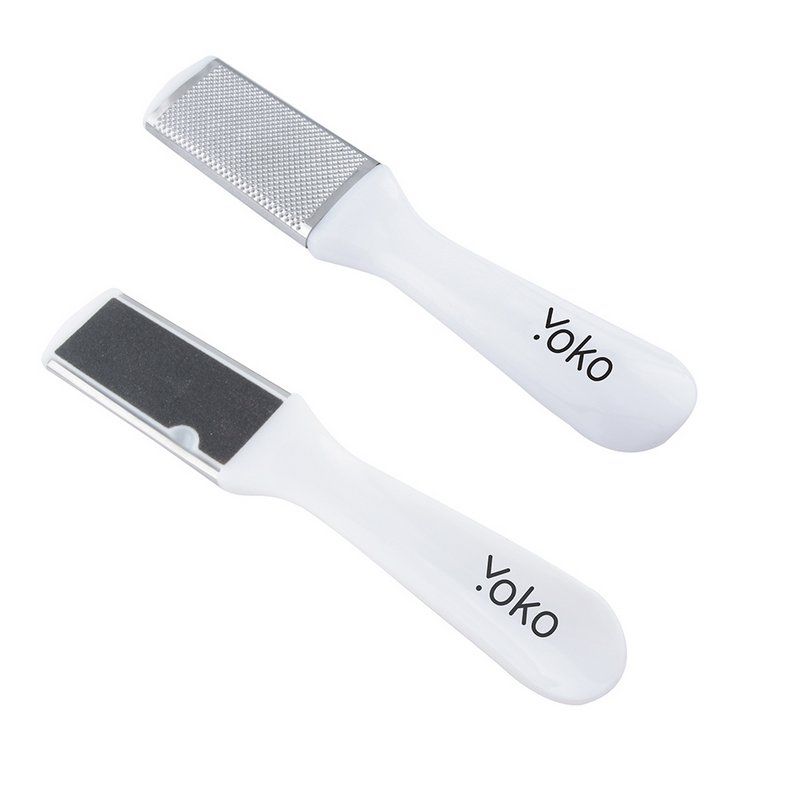 Двусторонняя терка YOKO предназначена для завершающей обработки стоп и пальцев ног, имеет 2 рабочие поверхности. Сторона с крупным абразивом эффективно удалит огрубевшую кожу, сотрет мозоли и натоптыши. Сторона с мелким абразивом мягко и легко отшлифует неровности, кожа станет гладкой и нежной. Перед использованием рекомендуется распарить кожу стопы. Металлическая часть, что обеспечит легкую чистку после использования.