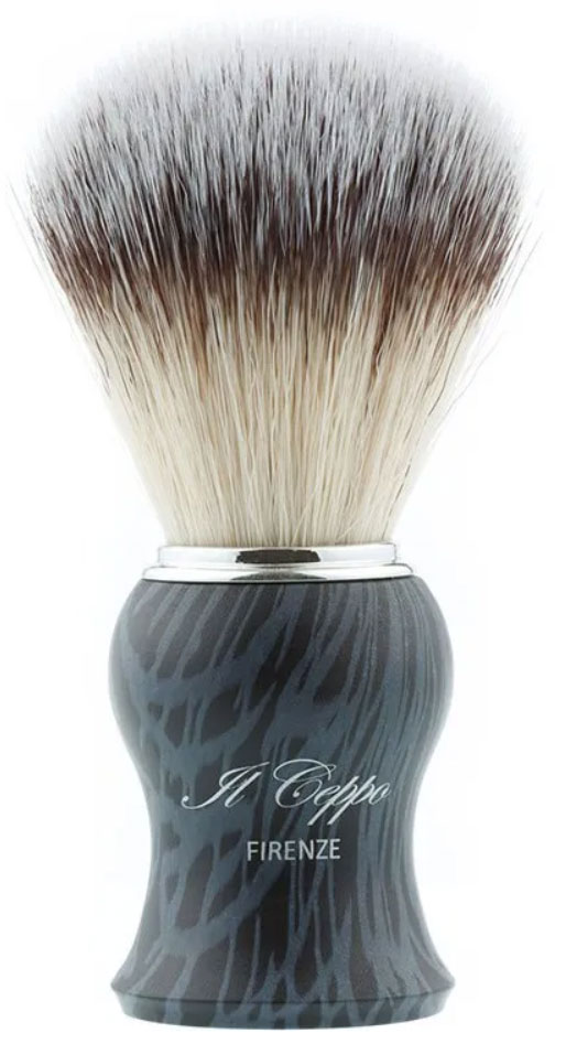 Помазок для бритья IL Ceppo PE317S предназначен для вспенивания мыла или пены. Щетина помазка массирует, увлажняет и размягчает кожу, равномерно распределяя пену по лицу. Плотная кисть из синтетического барсучьего ворса размещена в пластиковой ручке графитового чёрного матового цвета.