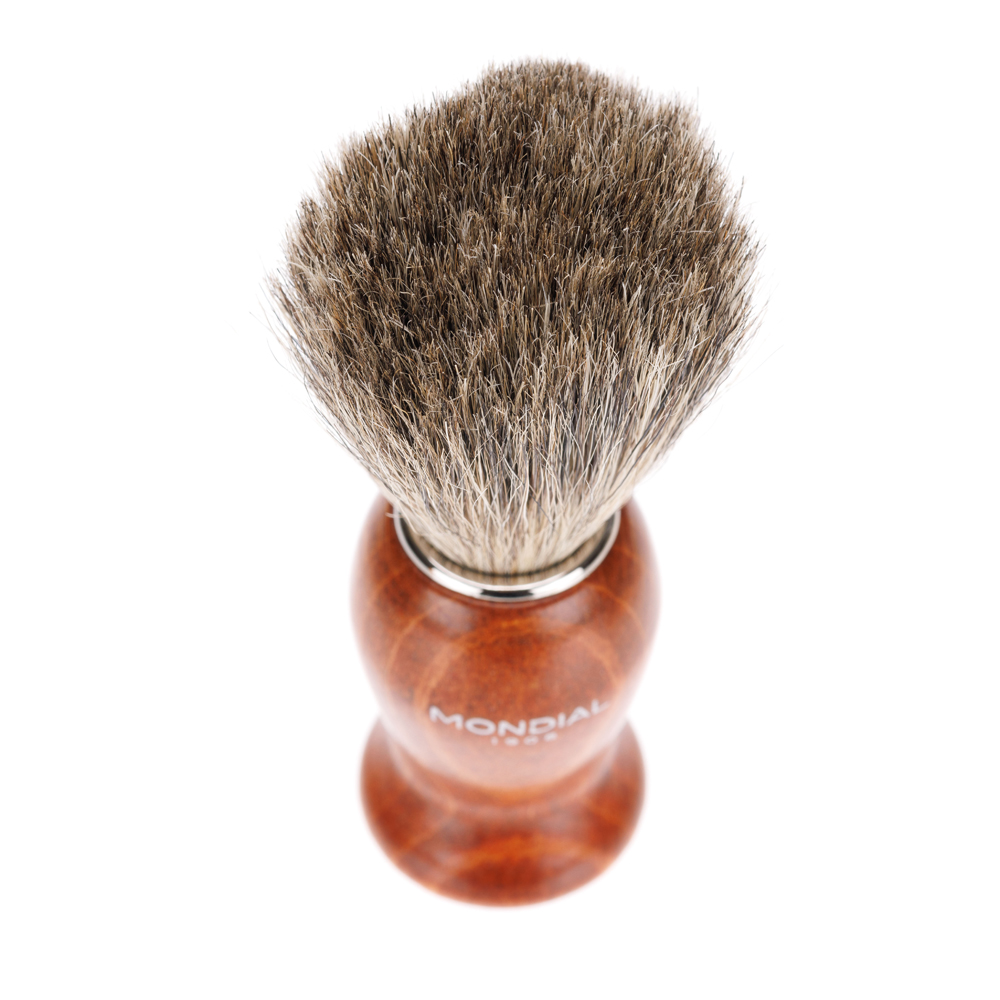 Помазок для бритья Mondial M6713_a – идеальный инструмент для создания пены и ее нанесения на кожу. Ручка помазка изготовлена из натурального красного дерева, она удобно ложится в руке и не скользит. Кисть помазка изготовлена из настоящего барсучьего ворса, отличающегося мягкостью и упругостью.