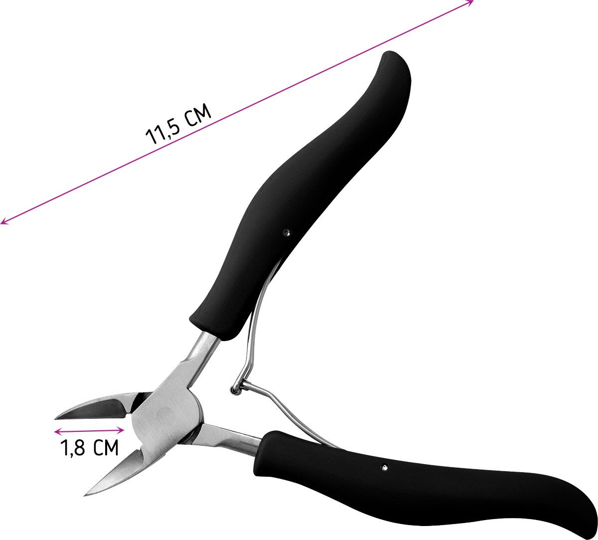 - Изогнутая форма лезвий позволяет сделать ровный, аккуратный срез, не заламывая ногтевую пластину.