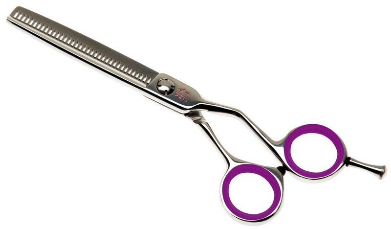 Изготовлены из высокоуглеродистой стали 440С которая обеспечивает долгий срок службы ножниц. Ножницы менее подвержены коррозии, долго сохраняют заточку. Специальная зеркальная полировка обеспечивает дополнительную антикоррозийную стойкость. Эргономичные, удобная изогнутая ручка, съемный упор. Форма полотен - европейское полотно, конвекционная заточка 30 зубцов, срез волос 25-30%, имеют форму в виде флажков, что позволяет добиться плавного перехода при филировке. Сложная винтовая группа обеспечивает постоянное натяжение полотен.