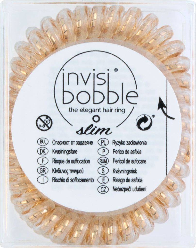 Резинка-браслет для волос invisibobble Slim Bronze Me Pretty Мерцающий Бронзовый 3097 — спиралевидная резинка в бронзовом дизайне. По сравнению с резиночками ORIGINAL, SLIM имеют большее количество витков, при этом меньшего размера, благодаря чему смотрятся изящнее.