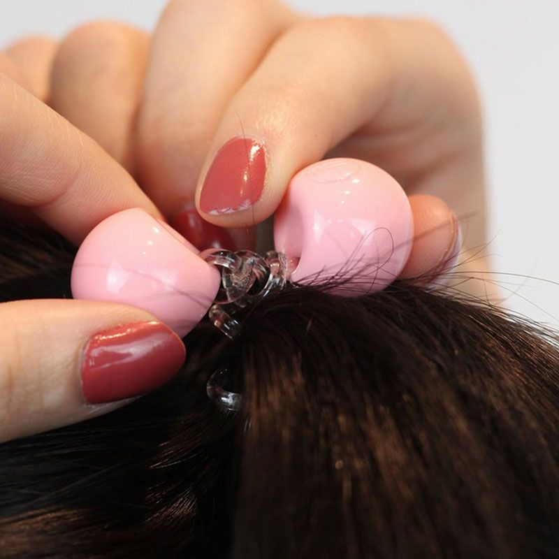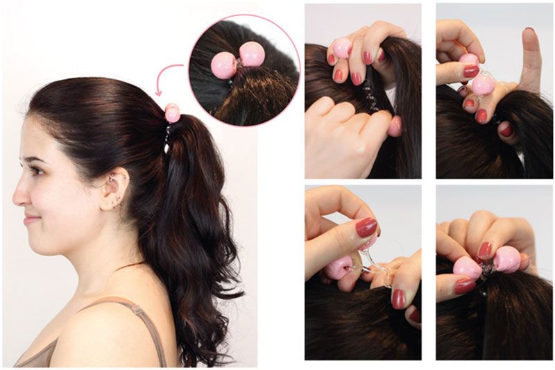 Чтобы собрать пряди в хвост или пучок, оберните спираль вокруг волос, закрутите шарики у концов спирали и закрепите прическу. Готово!