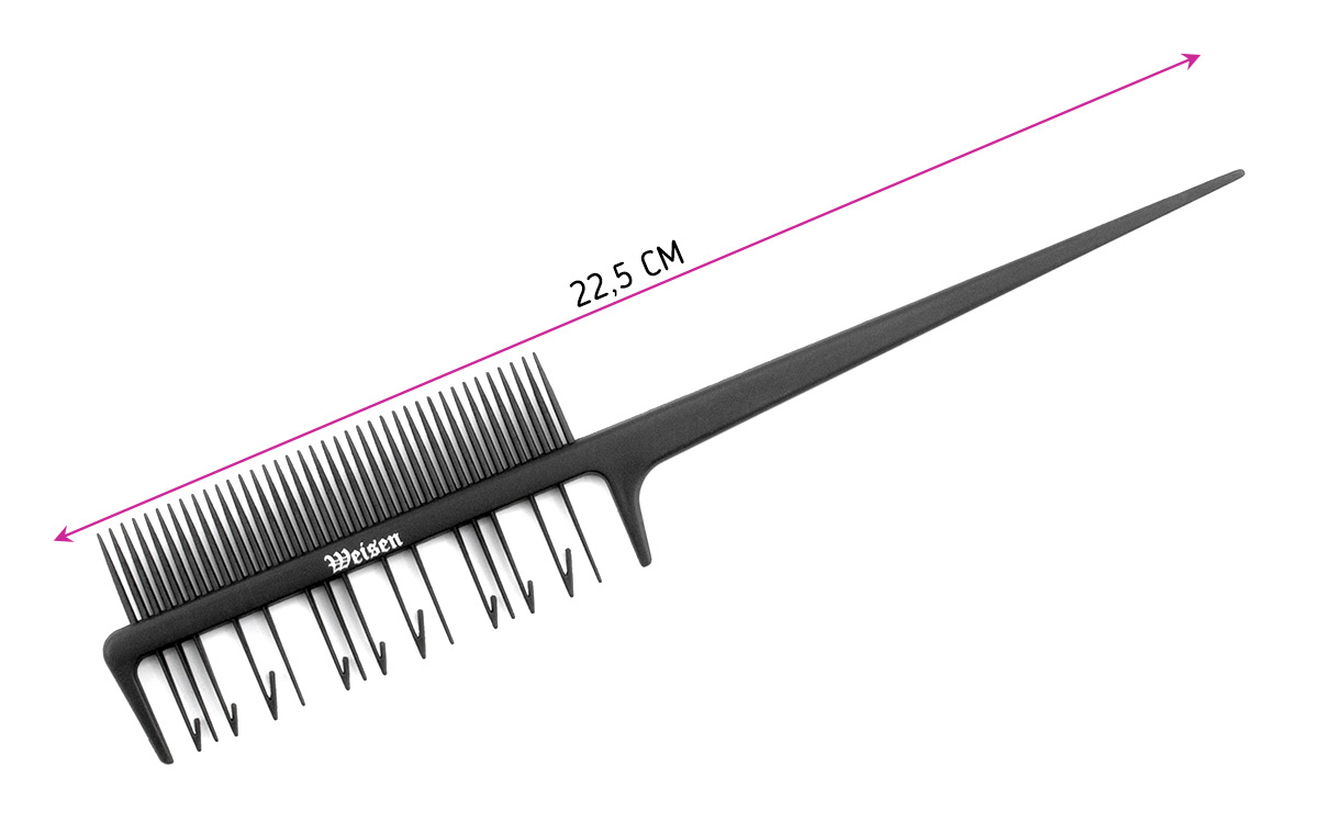 —Гребень Weisen CB994 для мелирования, двухсторонний, карбоновый, 22,5 см, черный
