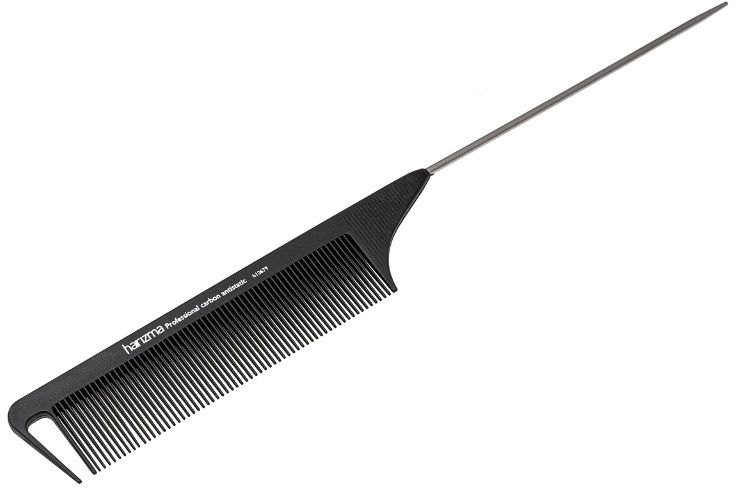 Профессиональная расческа harizma h10679 с металлическим хвостиком серии Carbon Antistatic. Выполнена в черном цвете из материалов высокого качества. Удобна в применении для расчесывания средних и длинных волос.
