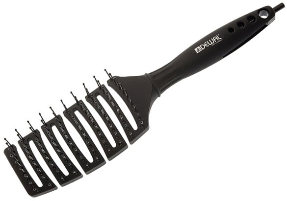 Щетка туннельная DEWAL BRBM3 из серии BLACK MAGIC с нейлоновой щетиной, покрытием SOFTTOUCH и съёмным хвостиком для пробора. Выполнена в чёрном цвете.