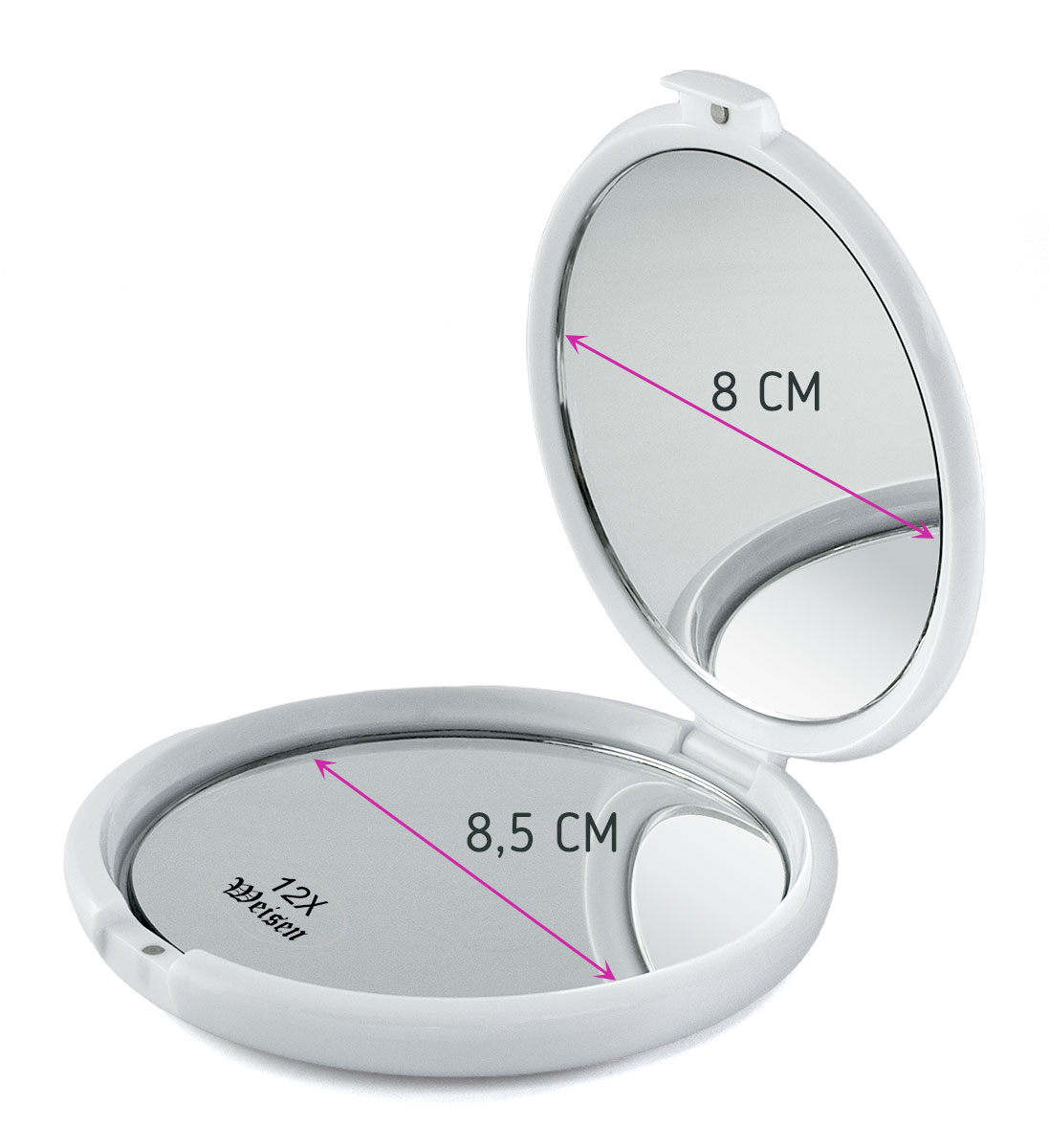 Зеркало компактное Weisen AL-2063-White, 12Х увеличение, d 10 см, белое