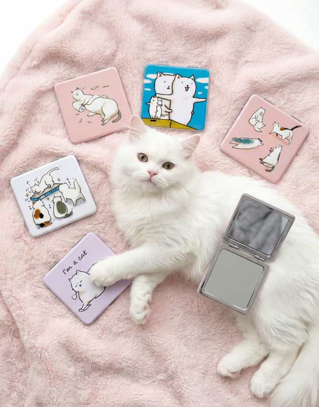 В этой партии — весенняя коллекция с яркими принтами. В ассортименте представлены модели с озорными котиками, цветочные и графичные варианты. Широкая палитра позволяет подобрать зеркало под любой вкус — от сдержанной классики до капризных молодёжных решений.